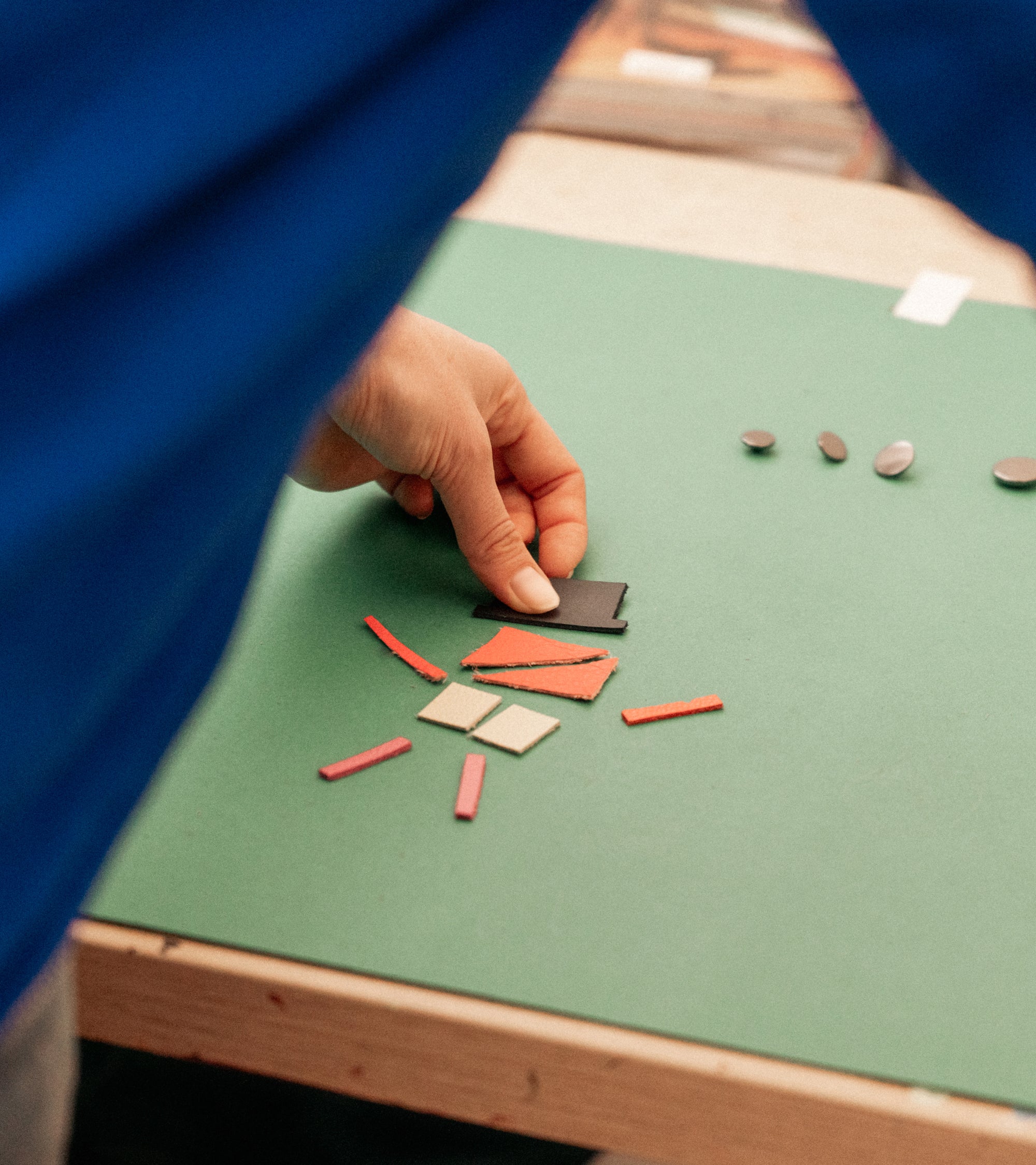 Artiste et réalisatrice, Alix Bortoli façonne des histoires et des films à la main. Du bois à la céramique, du papier au cuir, elle explore la matière, image par image, suivant un processus créatif long et complexe qui ne révèle sa magie qu’une fois le bouton « play » pressé. Pour notre capsule de Noël, elle a imaginé trois vidéos réalisées à partir de chutes de cuir de nos ateliers : une fabrique miniature, peuplée de personnages, hommage au cuir, à l’artisanat, et à la poésie du geste. Son univers coloré et rêveur se prolonge également dans nos vitrines du 5 novembre au 26 décembre, où cette artiste parisienne formée à Londres prendra temporairement ses quartiers pour mieux célébrer la créativité et l’esprit de Noël.