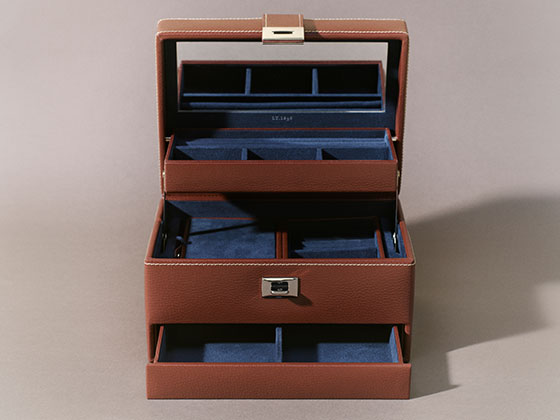 Dans les ateliers Le Tanneur, le travail du cuir lisse est considéré comme un art en soi. Teinture des tranches, assemblage millimétré, polissage final : tout est pensé pour révéler la noblesse de ce cuir, sans jamais trahir sa simplicité. C’est une matière exigeante, mais qui récompense ceux qui la choisissent avec justesse.