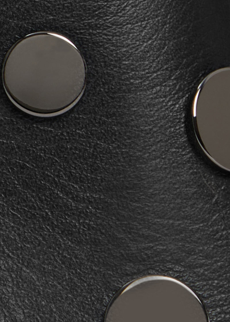 Les « studs » sont des éléments métalliques décoratifs finition « gun metal », ou teinte « canon de fusil ».