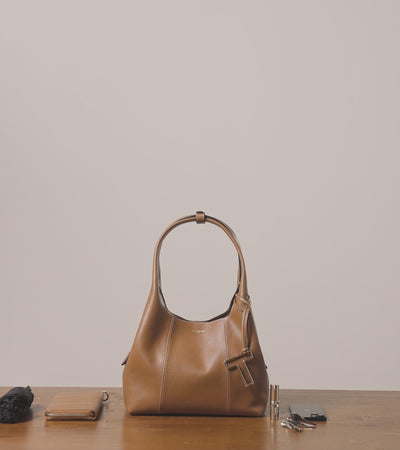 Ce sac porté épaule moyen modèle souple, en cuir grainé et aux lignes sans découpe, arbore un charms T finition argent signature de la Maison. Il se porte à la main ou à l'épaule.